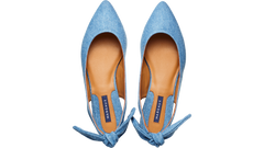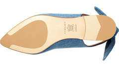 Crafted from premium European denim, this limited edition style puts a feminine twist on our beloved pointed-toe silhouette. With an open back and subtly elasticized heel, these wear-anywhere shoes come with a removable bow for ultimate versatility.